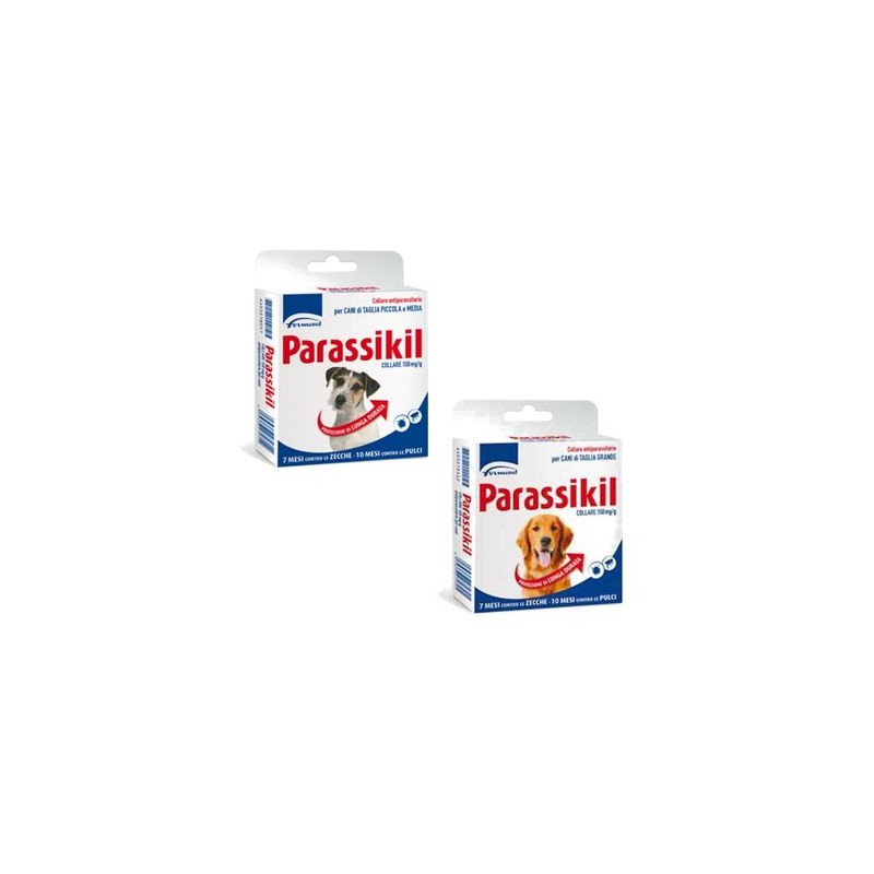 Parassikil è il nuovo collare antiparassitario per cani di Formevet. E' un trattamento completo di prevenzione contro pulci e zecche nel cane ed assicura una protezione fino a 7 mesi contro le zecche e 10 mesi contro le pulci. Il collare è molto semplice da applicare ed è possibile rimuoverne la parte in eccesso, tagliandola. E' inoltre resistente all'acqua e al'umidità in quanto le sue proprietà restano inalterate. Non va rimosso durante tutto il periodo di durata per maggiore efficacia.