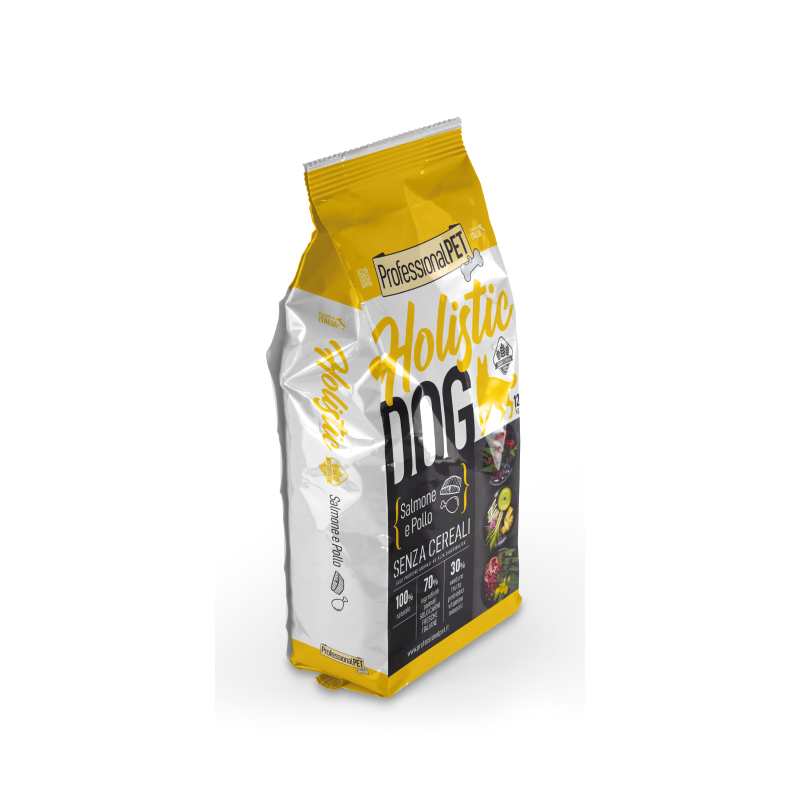 La linea Holistic Dog grazie all’assenza di cereali e al 70% di carni selezionate, mantiene basso