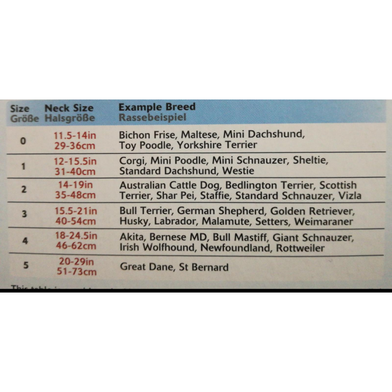 Il collare HALTI è disponibile in sei taglie per adattarsi perfettamente a tutte le razze e taglie.