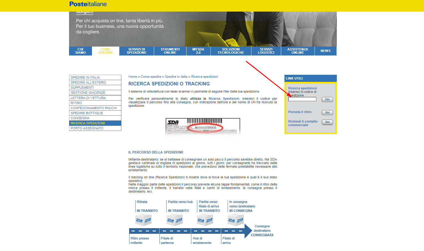 Per effettuare il tracciamento della tua spedizione, dopo aver ricevuto la nostra mail con il tracking number, bastacollegarsi al sito web del corriere <<Clicca Qui>> ed inserire il tracking nel campo “RICERCA SPEDIZIONI” (fig. 1)
