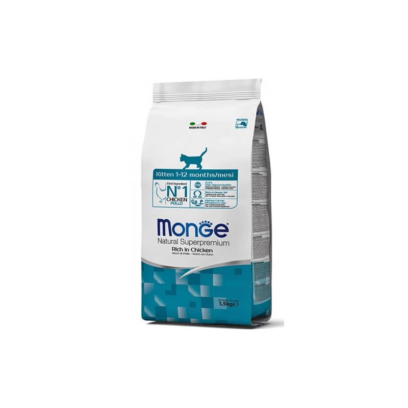 Monge Superpremium Gattini Ricco di Pollo è un alimento completo per gattini dallo svezzamento