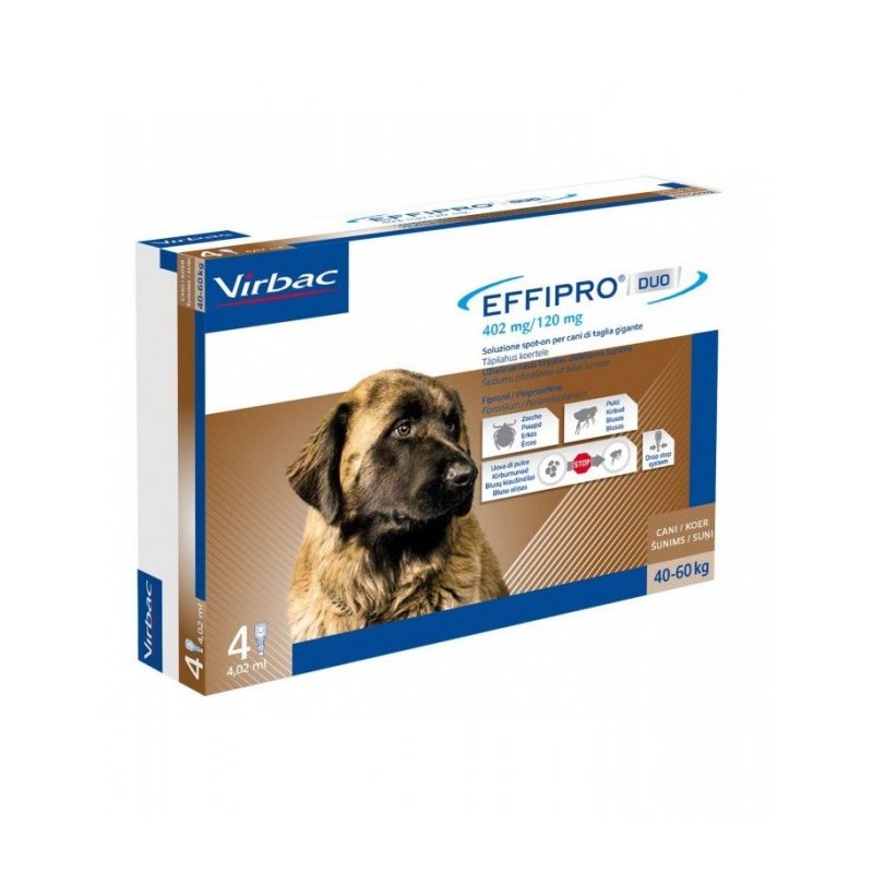 40-60 kg 4 pipette indicato per il trattamento delle infestazioni da pulci da sole o in associazione con zecche.