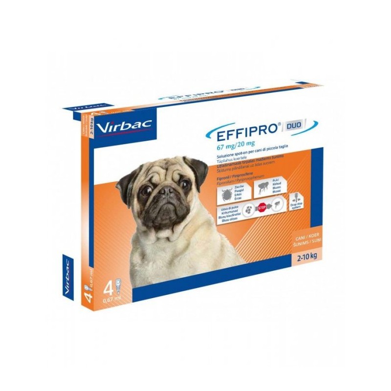 Effipro duo cane spot-on 2-10 kg 4 pipette indicato per il trattamento delle infestazioni da pulci da sole o in associazione con zecche.