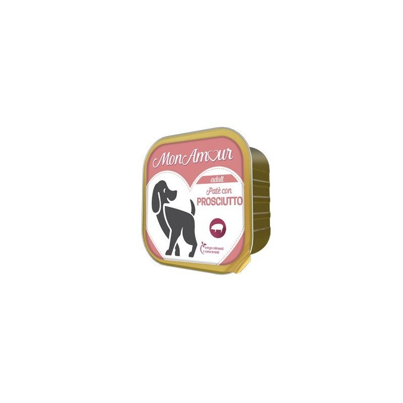 MONAMOUR patè per cani con PROSCIUTTO 300gr completo per cani adulti.